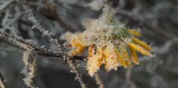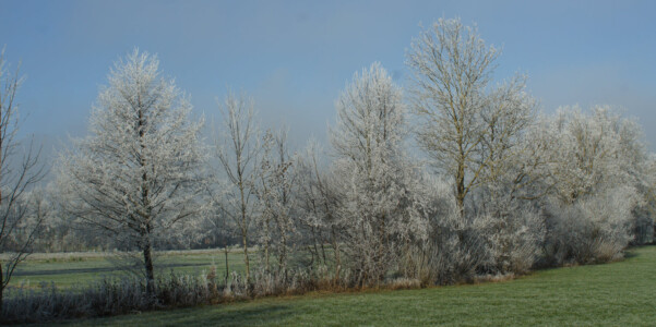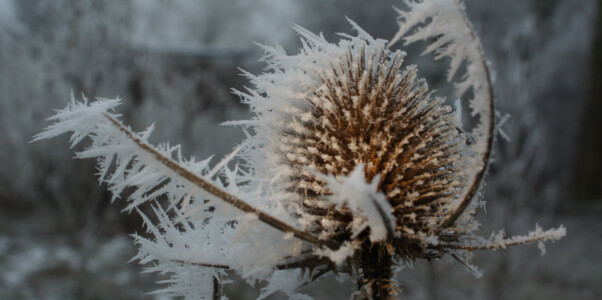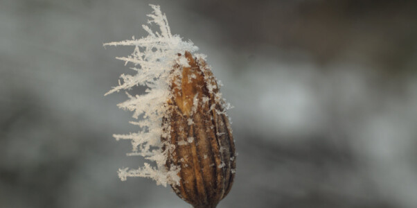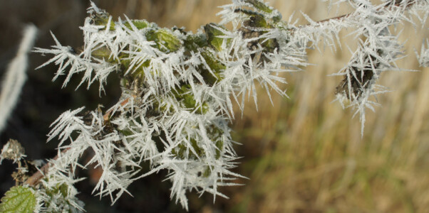 Kristallklar und starr – so zeigt sich der Frost und lässt sein Werk in der Wintersonne glitzern. Die Eiskristalle, welche als zerbrechliche Nadeln jeden Halm und jedes Ästchen überziehen, künden von einem begabten Künstler. Er braucht keinen Stift und kein Lineal, kein Papier und keinen PC und dennoch schafft er im Vorbeigehen einen unüberschaubare Fülle an geometrisch höchst präzisen, kristallinen Formen.