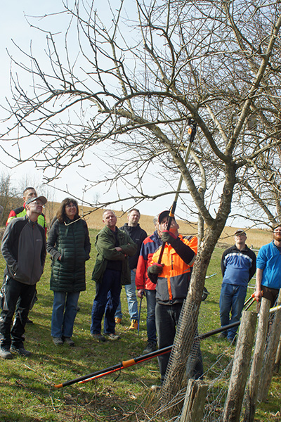 Pünktlich zur beginnenden Frühlingszeit, Mitte März, wurde ein sehr interessanter Obstbaumschnittkurs abgehalten. Organisiert von „lebensraum:natur“ und der “ Obstinitiative Inn-Salzach“ zeigte DI Heimo Strebl (Obstbaureferent der LK OÖ) in der weitläufigen Streuobstwiese der Familie Voglsperger auf kurzweilige Art, wie man Obstbäume fachgerecht schneidet und damit richtig pflegt. Auch wurde praktisch gezeigt, worauf es beim Pflanzen eines Obstbaumes besonders ankommt, und dabei dem wichtigen Pflanzschnitt viel Aufmerksamkeit gewidmet.
